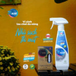 Bước 3: Xịt dung dịch trực tiếp vào khu vực cần lau, để 10-15s sau đó dùng khăn khô lau sạch. Không cần lau lại bằng nước.