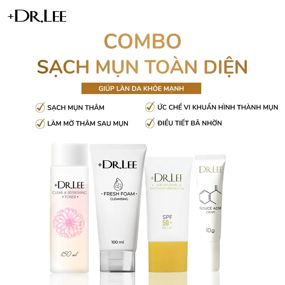 Bộ chăm sóc da mụn toàn diện +Dr.lee là lựa chọn hoàn hảo để làm sạch làn da đang bị tổn thương do mụn. Với công thức kết hợp thành phần chiết xuất có nguồn gốc tự nhiên, giàu dưỡng chất và dịu nhẹ khi dùng trên làn da. Bộ sản phẩm giúp loại bỏ tạp chất sâu trong lỗ chân lông; đồng thời điều tiết bã nhờn hiệu quả, hỗ trợ đắc lực cho quá trình ức chế, giảm và xóa làn da mụn hiệu quả.