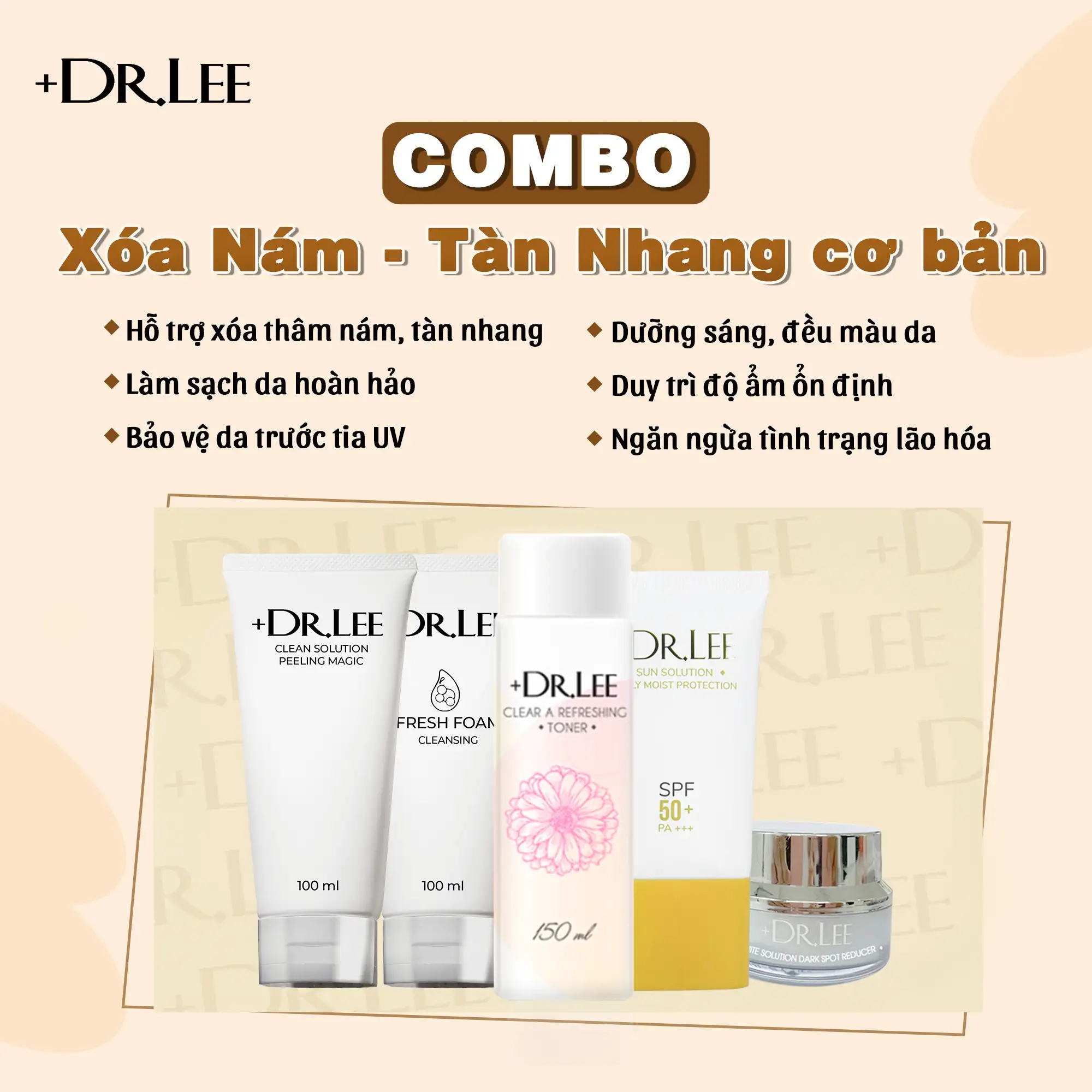 Bộ chăm sóc da nám – tàn nhang cơ bản +Dr.lee giúp làn da của bạn trở nên sáng và đều màu hơn. Thực hiện theo combo với những bước chăm sóc làn da toàn diện, giúp làn da của bạn luôn được nuôi dưỡng một cách tốt nhất, những vết nám, tàn nhang trên da sẽ mờ dần và mất hẳn.