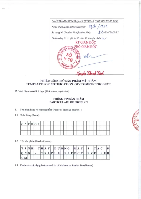 Thông tin sản phẩm Tinh chất dưỡng mắt 3 tác động C’Choi – Triple Effect Eye Serum